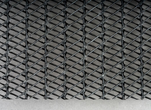HDPE (high-density polyethylene) geonets used in StrataDrain geocomposites are created through a process of extrusion. A network of interconnected ribs are formed with open spaces for fluid movement. The ribs allow horizontal drainage, enabling water or leachate flow easily across the surface.
