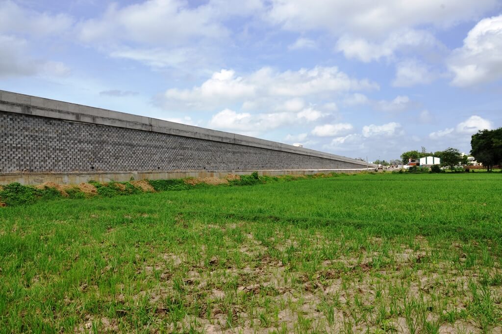 Strata advocated reinforced soil structures since they are faster to construct and cost-effective. The basic principle is to build two parallel reinforced soil structures retaining earth backfill in between. The reinforced soil walls were constructed with locally available non-plastic soils, and StrataGrid™ polyester knitted geogrids as soil reinforcement. The fascia comprised of StrataBlock™ precast segmental concrete blocks. The StrataBlock™ with StrataGrid™ system is highly cost-effective.